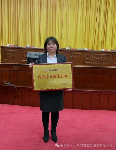 山東宏路重工股份有限公司榮獲了“2024年度淄川區(qū)成長潛力新星企業(yè)”的榮譽(yù)!宏路股份董事會秘書王雪芳代表公司上臺領(lǐng)獎。